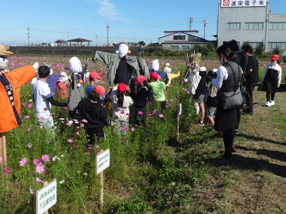 10月14日(金)に5年生が笠松町のコスモス畑に作ったかかしを立てに行きました。