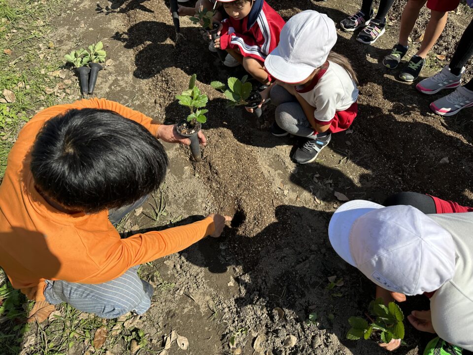 10月19日(木)にいちごの苗を学級園に植えました。保護者の方にお越しいただいていちごの植え方と育て方を詳しく教えていただきました。質問もたくさんできました。「いつ頃できますか?」「品種や天候等で多少違いはありますが、12月終わりから1月ごろにできるといいですね。」と教えていただきました。みんな楽しそうに取り組んでいました。