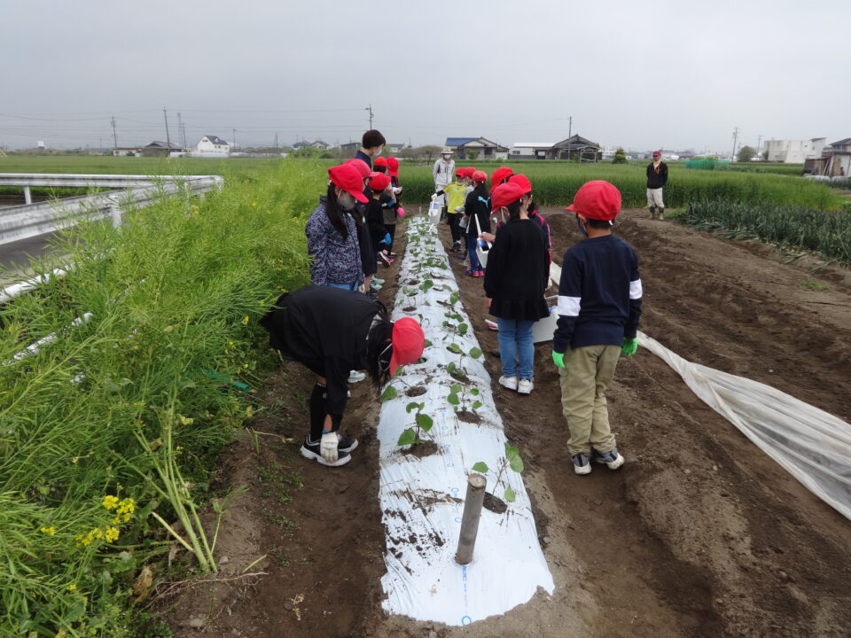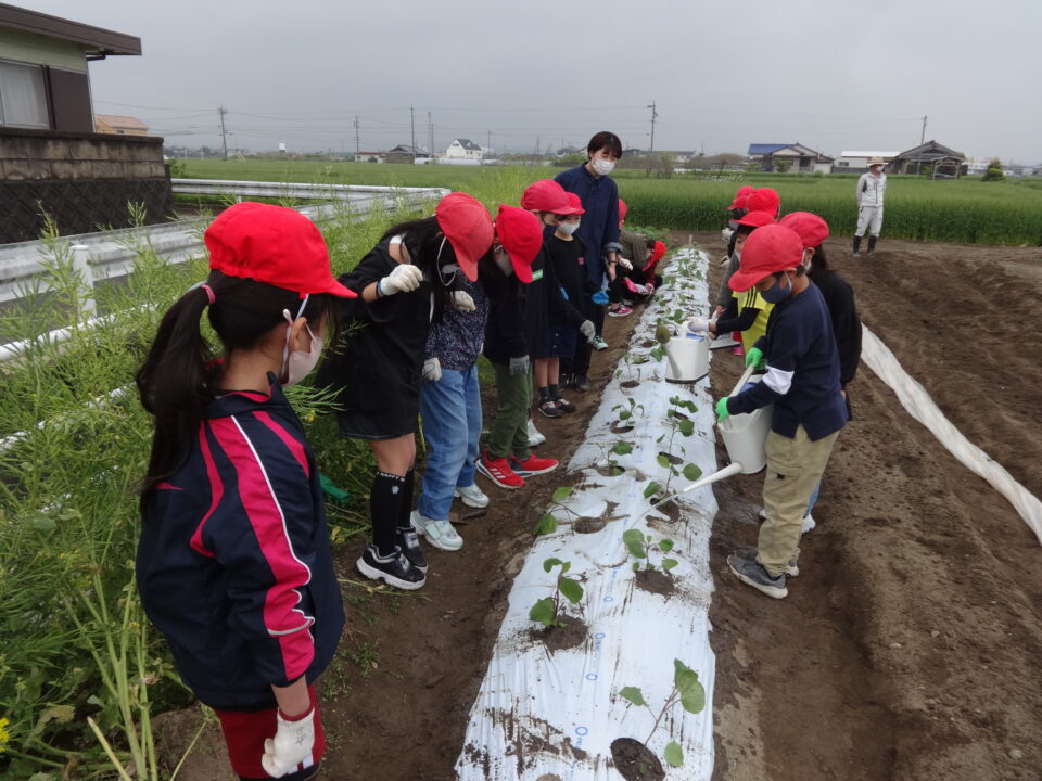 子どもたちは教えていただいた植え方をしっかり体験して、植えることができました。
