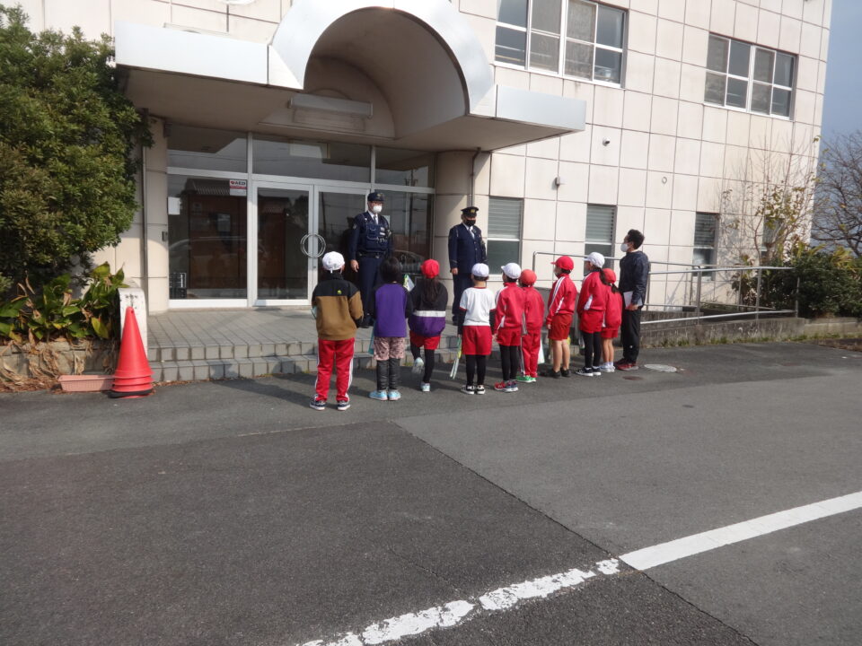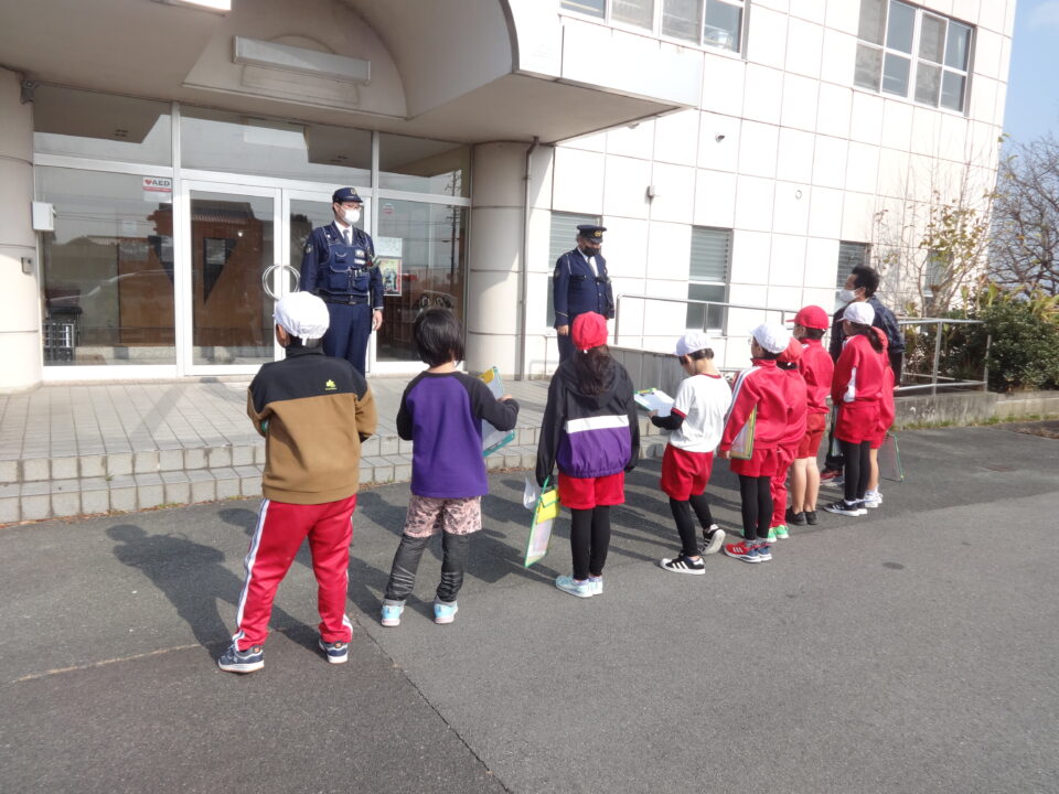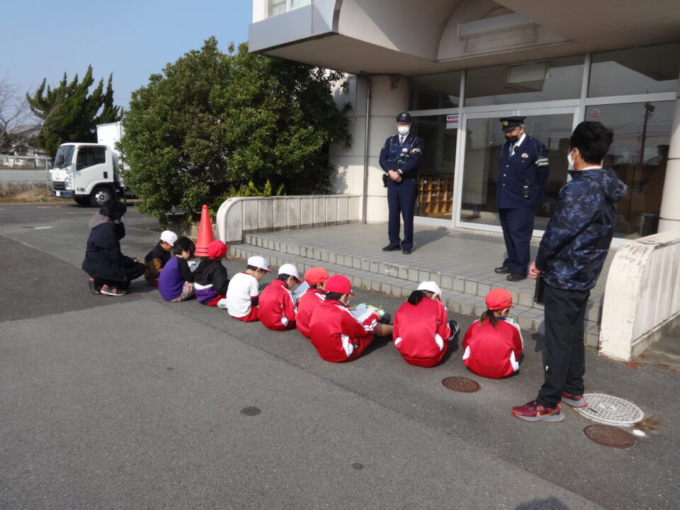 松阪署員さんと天白駐在さん2人にお越しいただいて、警察の仕事についてお話を聞きました。その後、たくさん質問をして、学習を深めました。