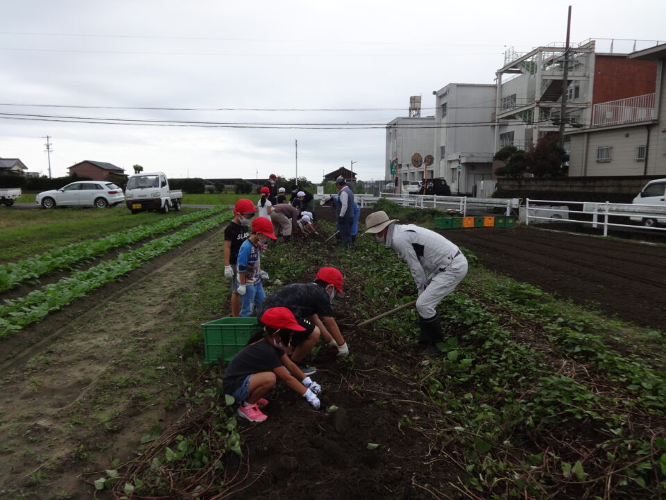 9月30日(木)の1限目に1年生と2年生がさつまいも掘りをしました。