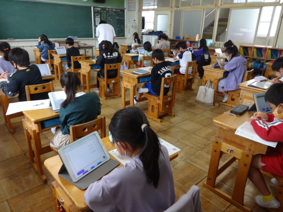 5月11日(水)の午前中に4年生が県教育委員会の学力向上の取組として、みえスタディ・チェックをCBT(Computer Based Testing)化で実施しました。)CBT化は、タブレット端末を用いて解答する学力調査の方法です。国語・算数・理科の教科を実施しました。