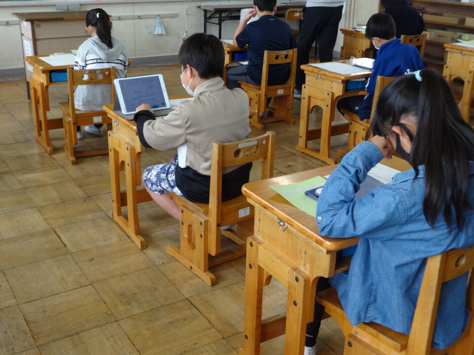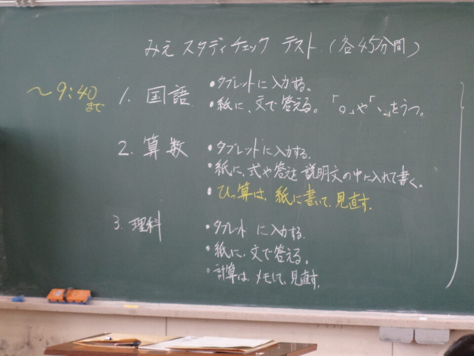 5月10日(火)の午前中に5年生が県教育委員会の学力向上の取組として、みえスタディ・チェックをCBT(Computer Based Testing)化で実施しました。CBT化は、タブレット端末を用いて解答する学力調査の方法です。国語・算数・理科の教科を実施しました。