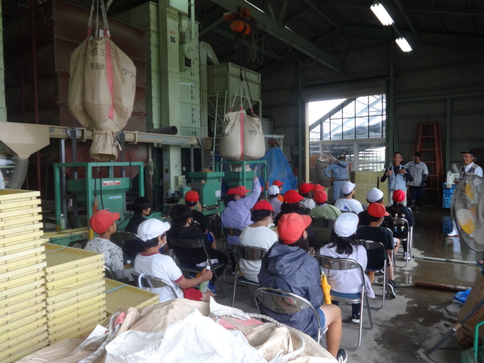 6月15日(木)に5年生がもみまき体験をしました。笠松営農倉庫へ行き、営農組合の方にお世話になり体験をさせてもらいました。もみまきは、もみを土にまいて、苗を育てることです。田植えで植えた苗を育てていきます。