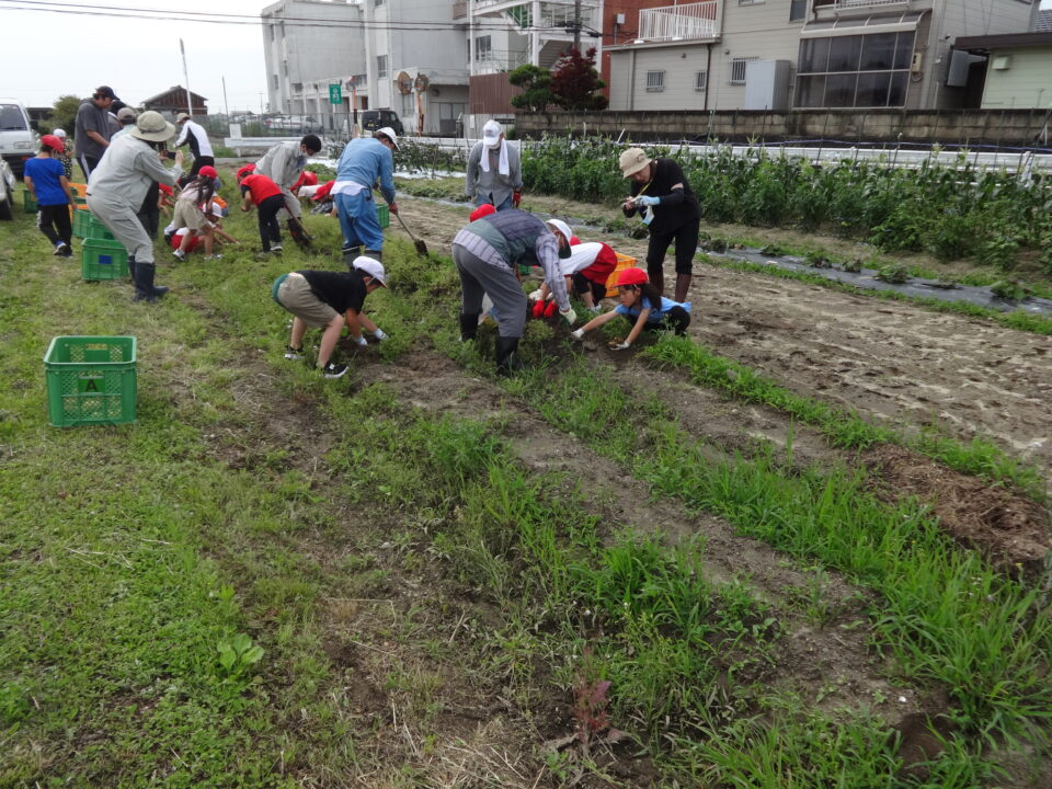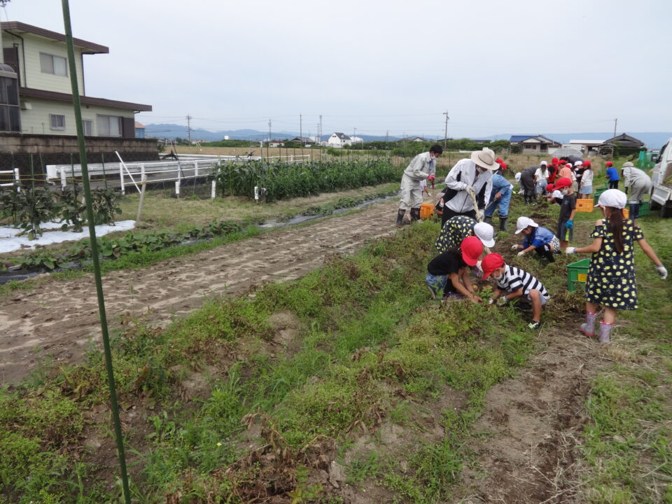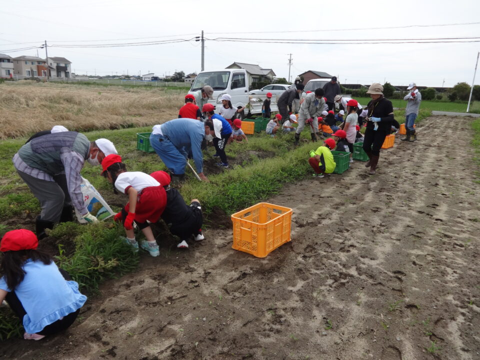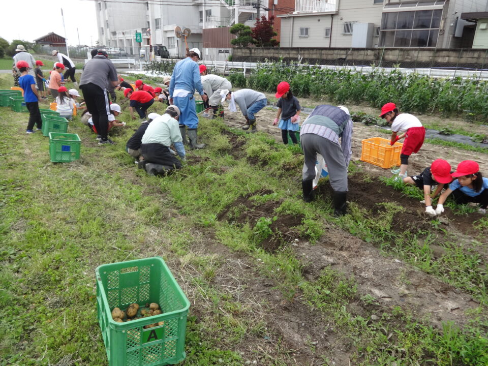 子どもたちはジャガイモの収穫をとても楽しんでいるようで、土を掘って大きなジャガイモを見つけては、嬉しそうに見せてくれました。収穫の残しがないように、声をかけてもらい、最後まで意欲的によくがんばっていました。