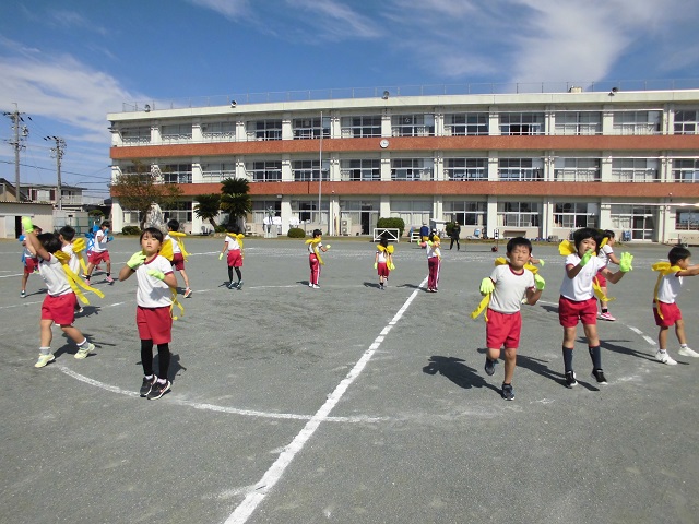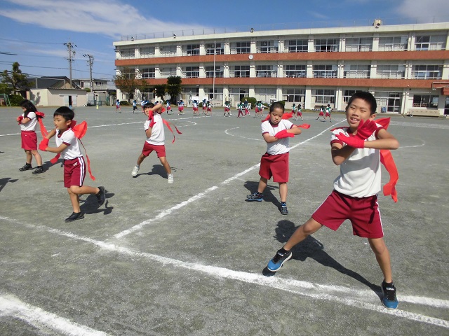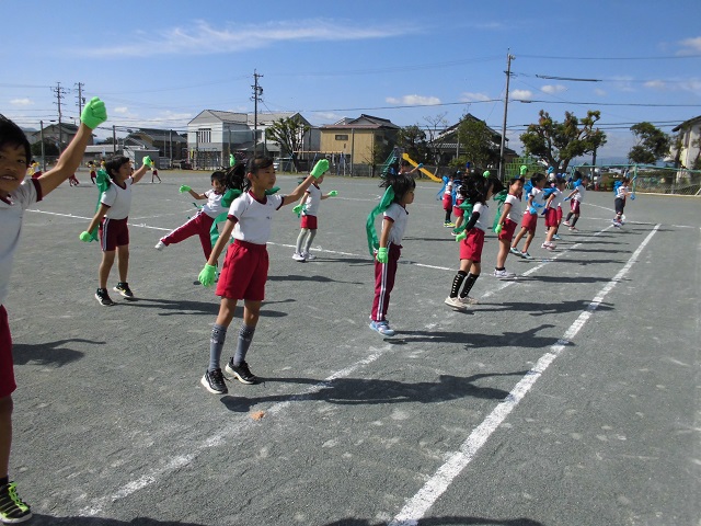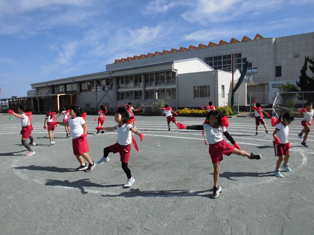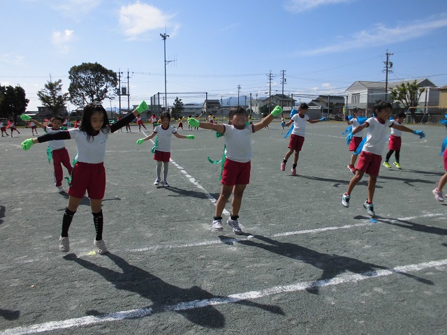 1,2,3年生による表現運動を運動会で披露します。4色の色に別れて動きます。まだまだ練習中ですが本番では笑顔できれいに動けるようにしたいと思います。プログラム順は2番です。結構早く終わってしまうので見逃さないようにしてくださいね。運動会は31日(土)開会式が8時50分から始まります。