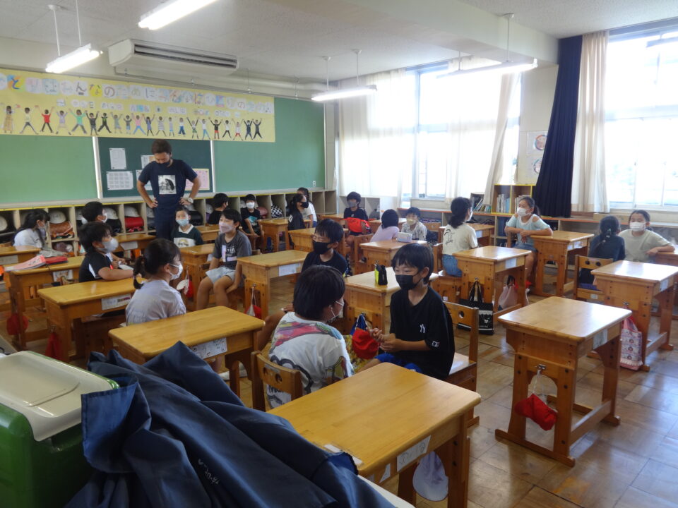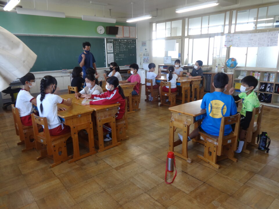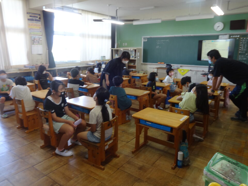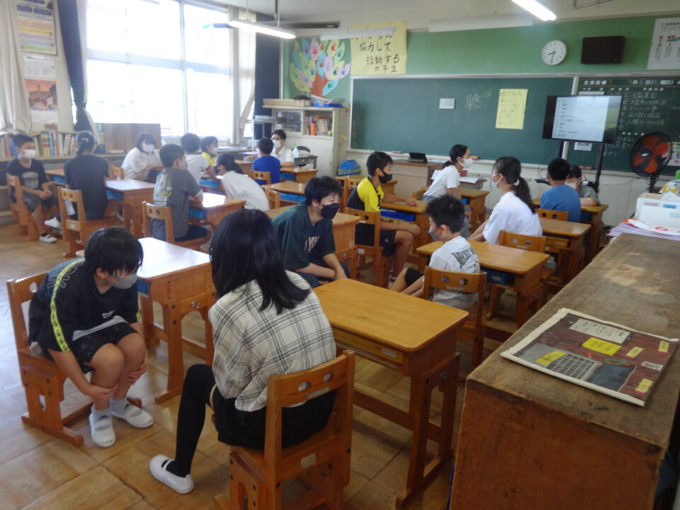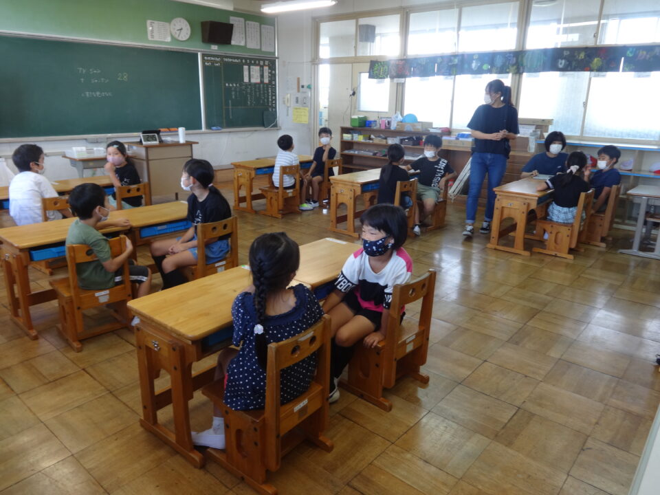 今日は初めての取組でしたので、子どもたちもはずかしそうな、でも楽しそうな雰囲気を感じました。また、学年の状況に応じて、先生がやり方等を工夫して説明をしたり、声をかけたりと、子どもたちに分かりやすく進めることができました。