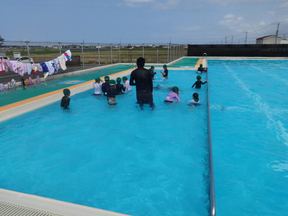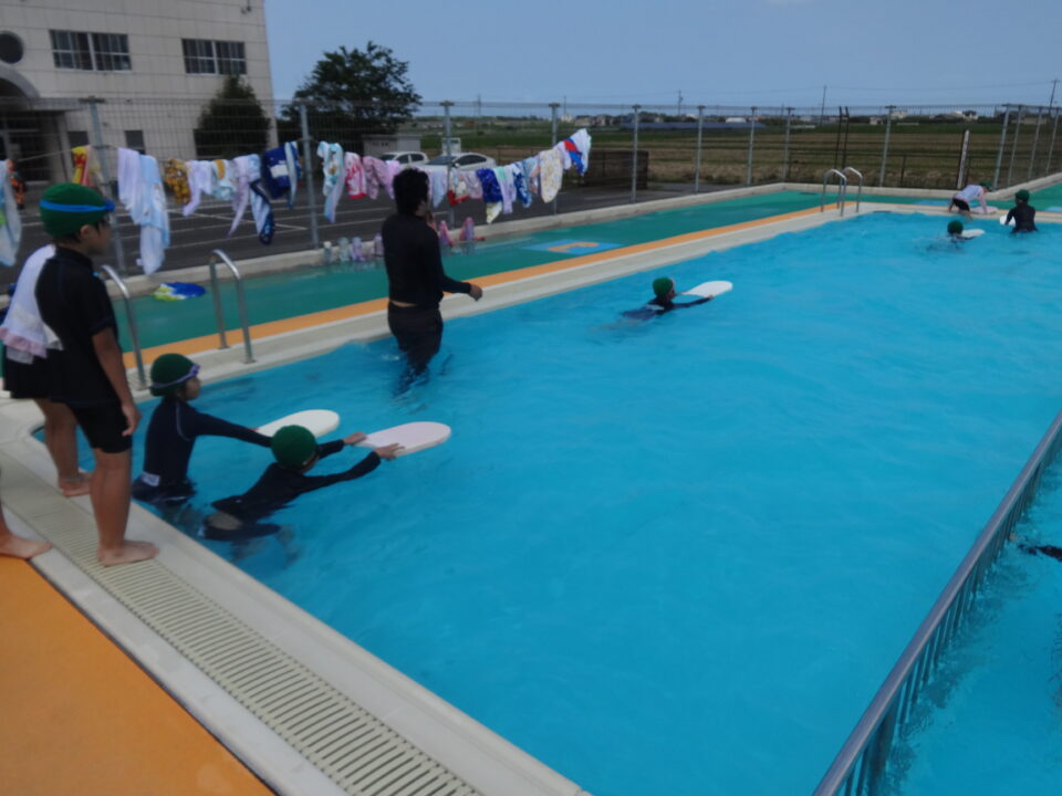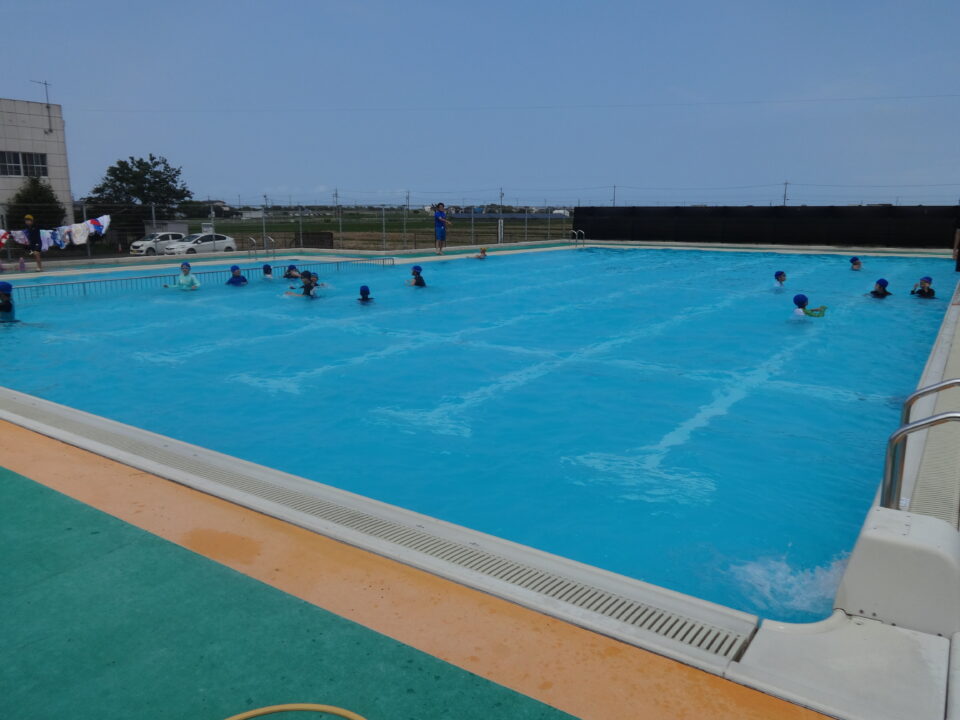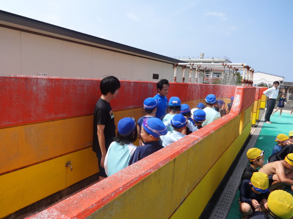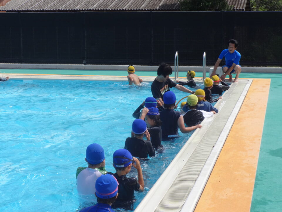 今日は、2年生、3年生、4年生の子どもたちが気温と水温の上昇を待って、5・6限目に行いました。子どもたちから、入水して「気持ちいい。」という声が聞こえてきました。子どもたちは各クラス集団で浮く活動やビート板を使った泳ぎ等、楽しく泳いでいました。
