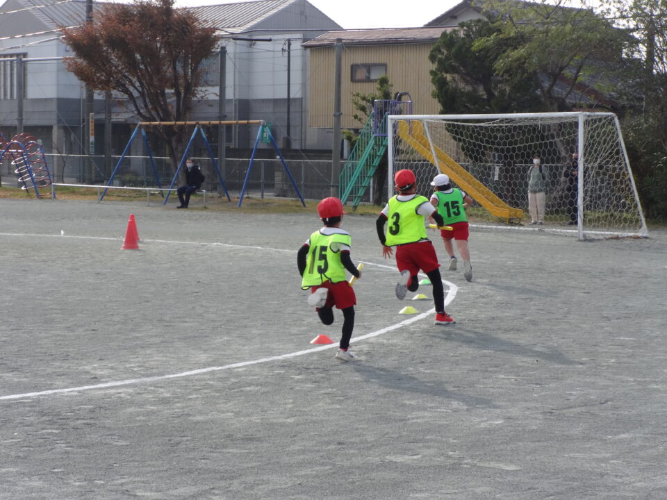 対戦チームを代えて、2回戦行いました。また、それぞれのチームで走る順を考えて、競い合いました。