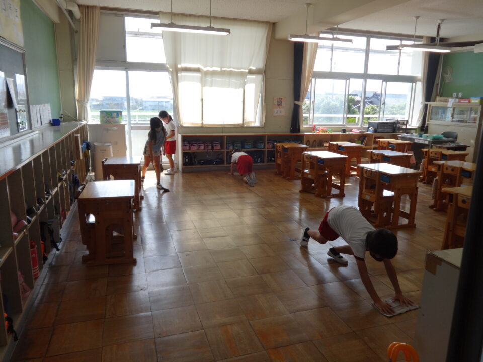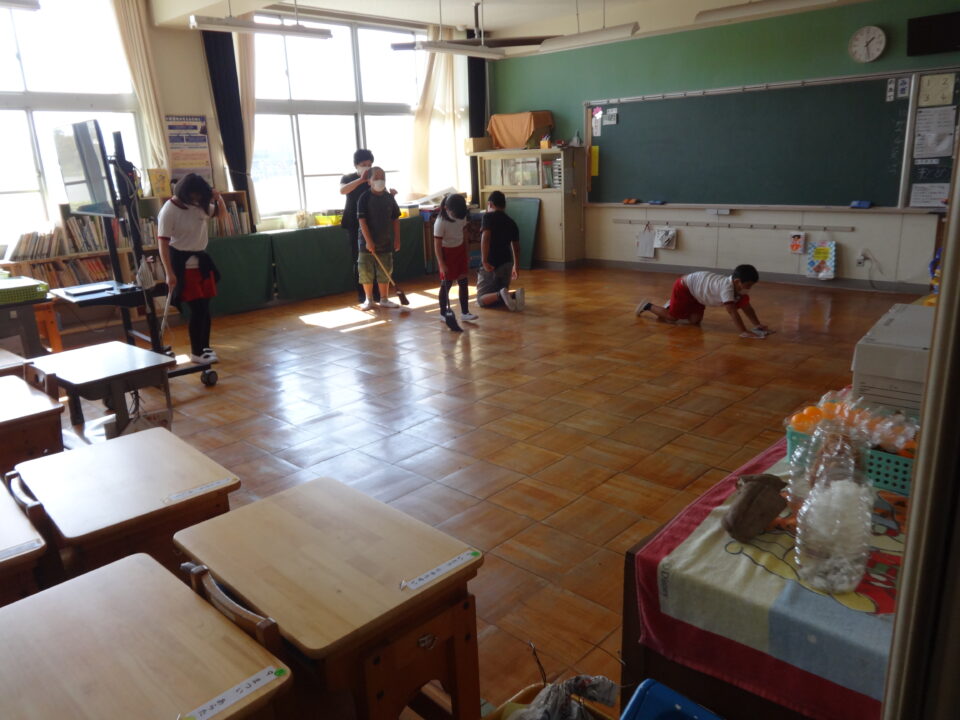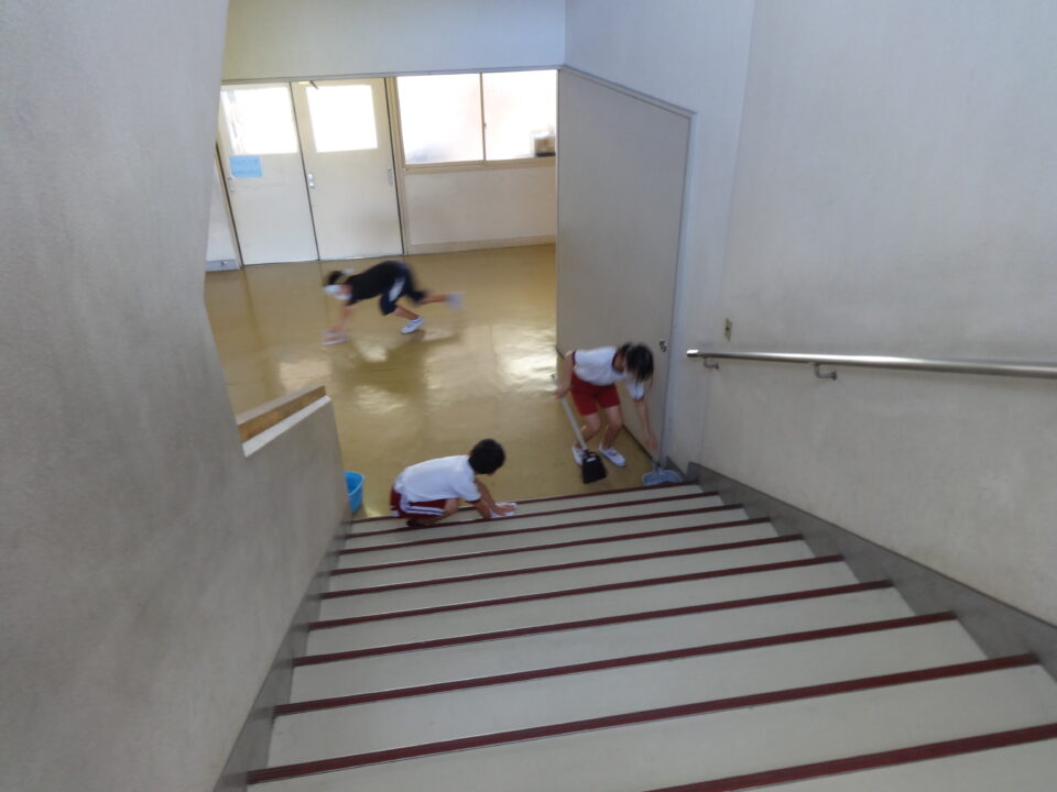 6年生を中心に高学年が、低学年に優しく親切に声をかけ、力を合わせてレインボー班掃除をがんばっています。掃除中は、一生懸命に自分の担当をがんばっている姿がとてもよかったです。