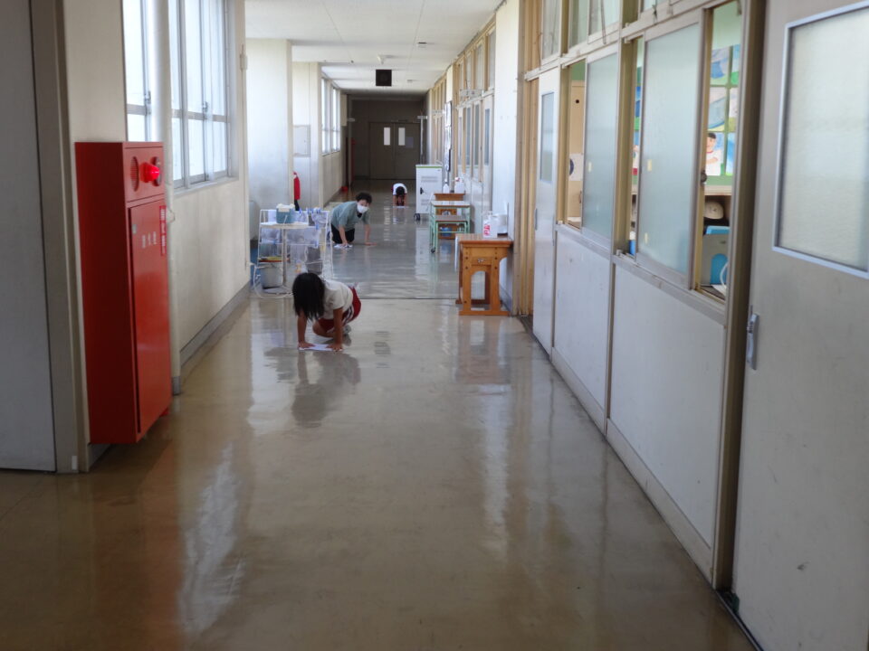 緊急事態宣言が解除されたことから、感染対策に気をつけながら、レインボー班掃除(縦割り班掃除)を再開しています。