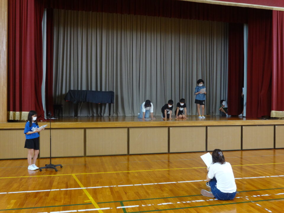 6月26日(月)6限目に6年生が七夕集会の時に発表する、劇の練習に取り組み始めました。これまでは、教室を中心に材料を利用して、道具等の作り物をしていました。