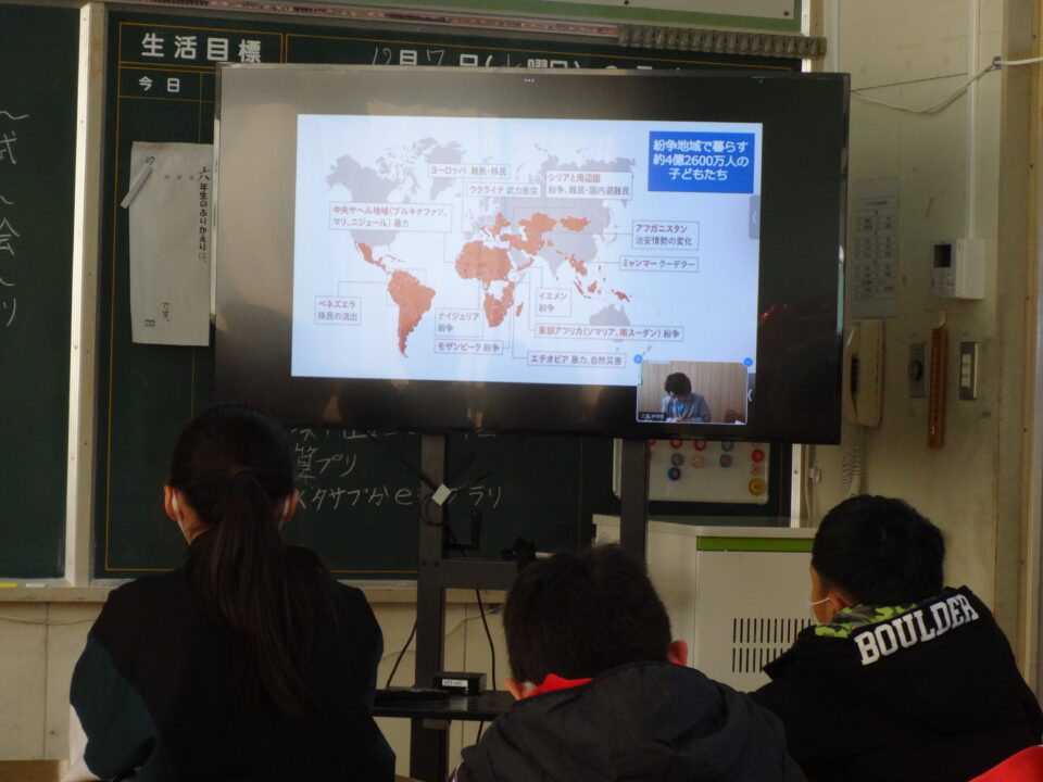 全体会では、三重県ユニセフ協会事務局の方から、ユニセフの活動や子ども権利条約の内容や世界の子どもたちの様子等について、ご講演をいただきました。ご講演後は、各校で感想を書き交流し、平和な世の中を続けるために、平和宣言を書きました。これからも、平和な世の中にするために、自分が行動できることを、さらに増やしてほしいことを願っています。