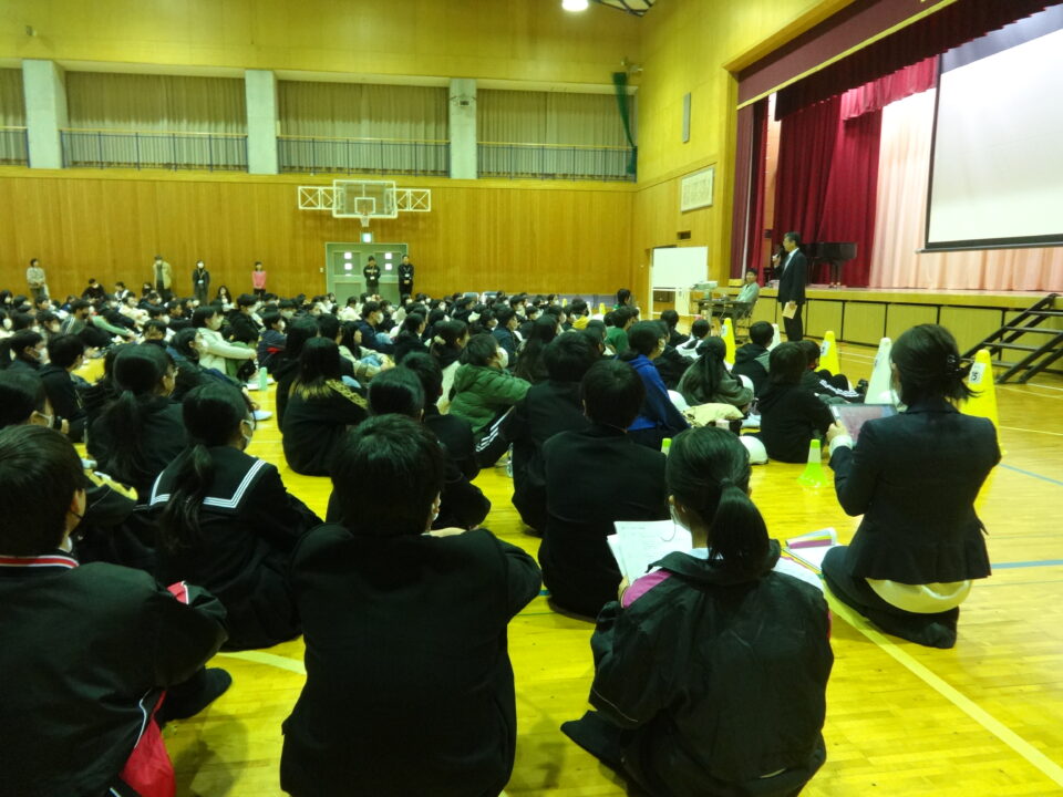 全体会では、、講師として、松阪市職員の大西唯斗先生をお招きして、自分の経験を通して聴覚障がいについて学習を深めるお話をしていただきました。