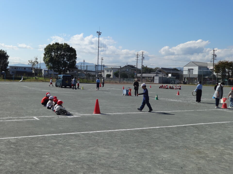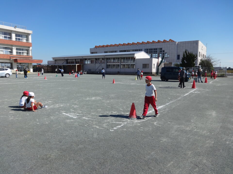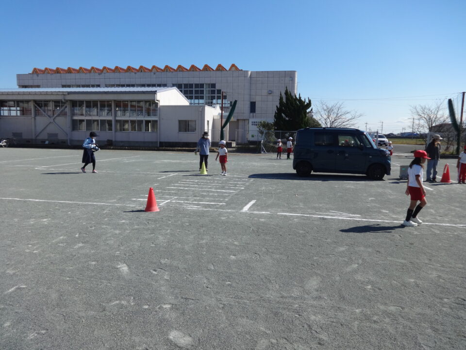 10月31日(火)の3限目に1・2年生が交通安全教室を行いました。とまとーずの2人の方にお越しいただいて道路の歩き方や横断歩道の渡り方等を教えていただきました。今回はPTA健康安全部の方やコミュニティ・スクール委員長さんにも協力をいただいて、運動場でお話の後、実際にコース体験をしました。