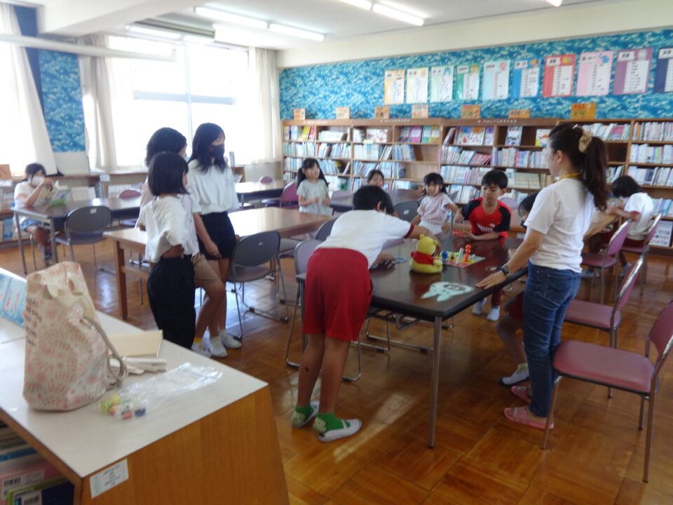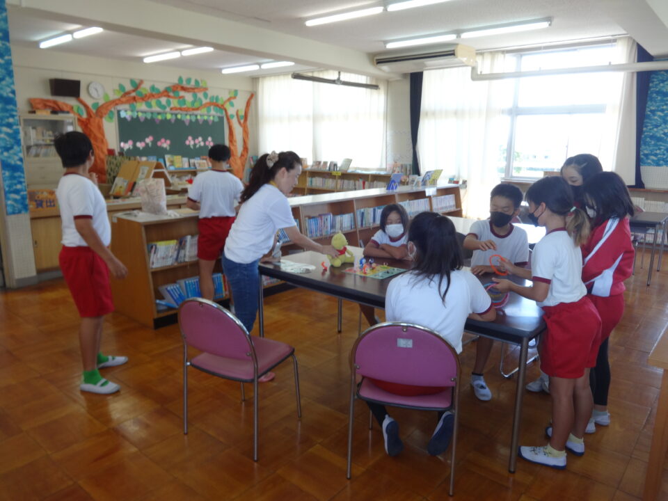 それに先立って、9月22日(金)の20分休みに図書室で、CS委員の読書活動部のボランティアさんによる読み聞かせをしていただきました。子どもたちも本の中身に入って、質問に答えていました。また、9月27日(金)の20分休みの図書室では、輪投げを取り入れていただき、輪投げを通して、集まった子どもたちが楽しい交流をすることができました。