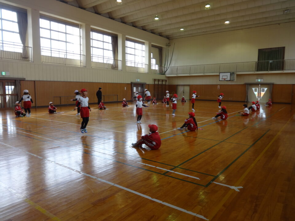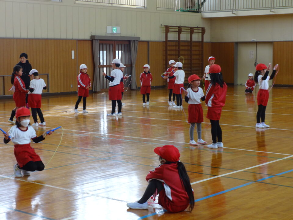 1月18日(木)体育の時間に1・2年生が合同でなわ跳びの運動をがんばっていました。