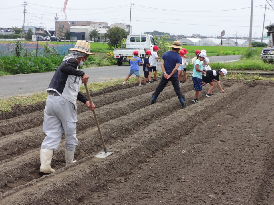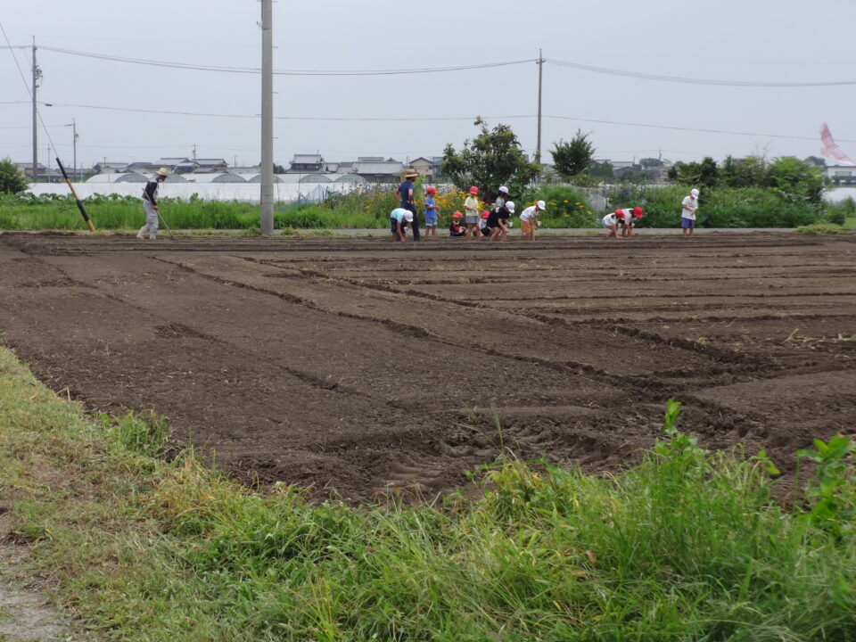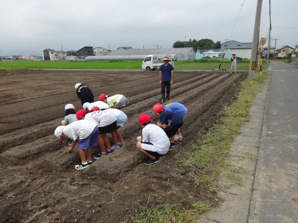7月14日(金)3限目に3年生が地域の畑をお借りして、大豆まきをしました。学校運営協議会CS(コミュニティ・スクール)委員さんでもある地域の方に、植え方を教えていただいて、子どもたちもがんばって植えることができました。中には、慣れている子どもいて、早く植えることができました。みんなで楽しく、大豆まきができました。