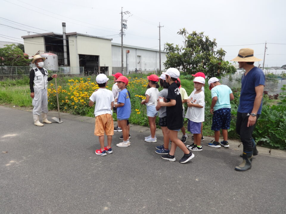 11月ごろ枝豆の時期に収穫する予定です。大豆でできるものを事前に学習していたので、質問でも「豆腐、納豆、味噌、醤油」に生まれ変わることを答えることかできました。また、どれくらいの大きさになるかみんなで予想をしていました。生長まで観察する楽しみができました。