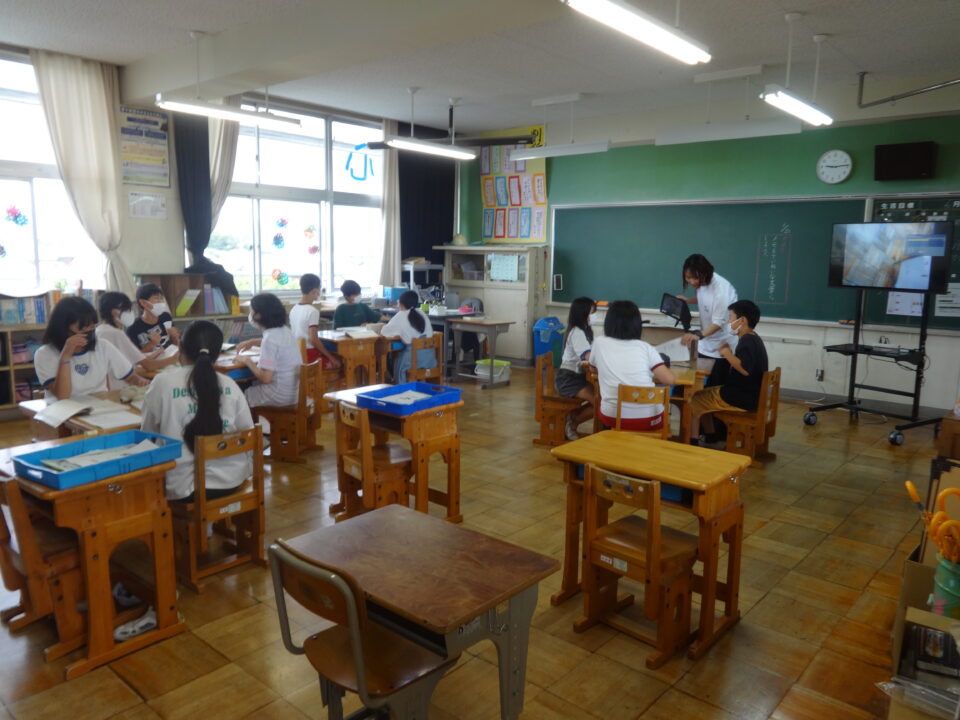 現在、授業形態の工夫を進めています。協働的な学びを生みだす形態として、ペア・グループ学習を取り入れ、なかまと聴き合い、語り合える対話的な学びを取り入れています。また、全体では、コの字形態を取り入れて、子ども同士が向き合って、聴き合ったり、語り合ったりできるように進めています。分からないこと(課題)をみんなで学び合えるように進めていくことで、分からないことを主体的に聴き合えるようにつなげていきたいと考えています。