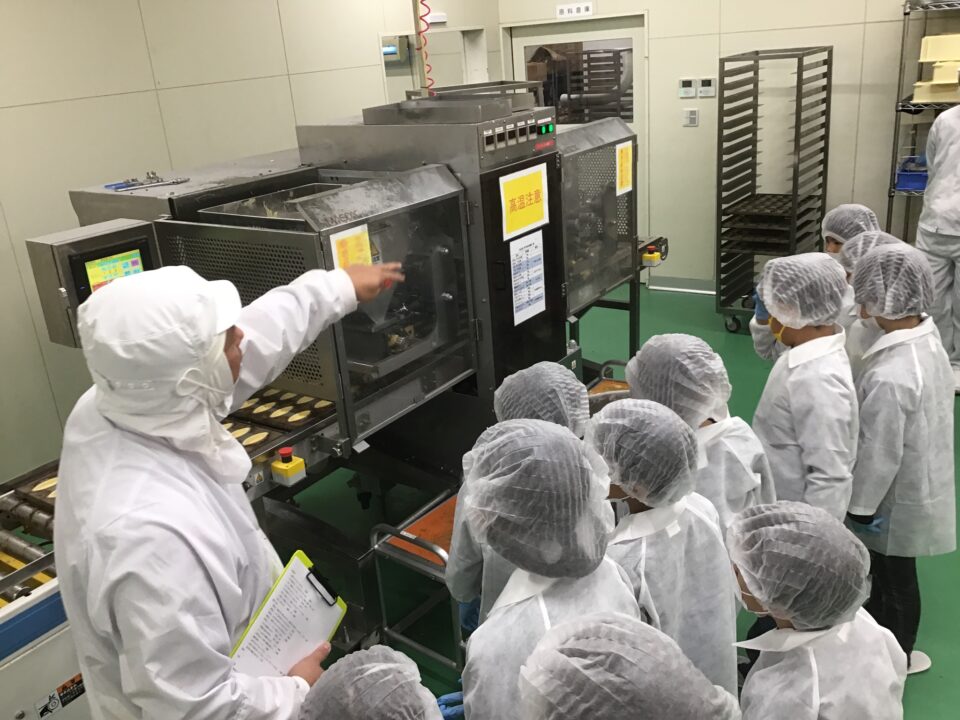 社会科では、「工場で働く人々の仕事」を学習しています。地域で作られている製品(お菓子)について興味が広まり、そこで働く人の工夫を知りたいと学習課題がまとまりました。そして、「お菓子を作る人は、どんなことを思って、新しいお菓子を考えるのかな。」「貝殻みたいなお菓子、どうやって作るの」等、いろいろな疑問を確かめに行きました。
