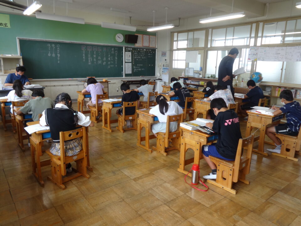 5年生の子どもたちは、手本をよく見て、真剣にしっかり取り組んでいました。いつも字を丁寧に書く姿勢につなげてほしいと思います。