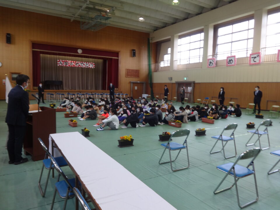 4月6日(木)、今日は曇り空ではありましたが雨が降らない中、令和5年度の着任式・始業式を行いました。学校では子どもたちの元気な姿が見られました。