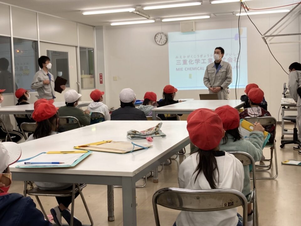 三重化学工業では、製品のお話や工場の見学、さらにオリジナルの保冷剤づくり体験をさせていただき、楽しく学び、見学することができました。