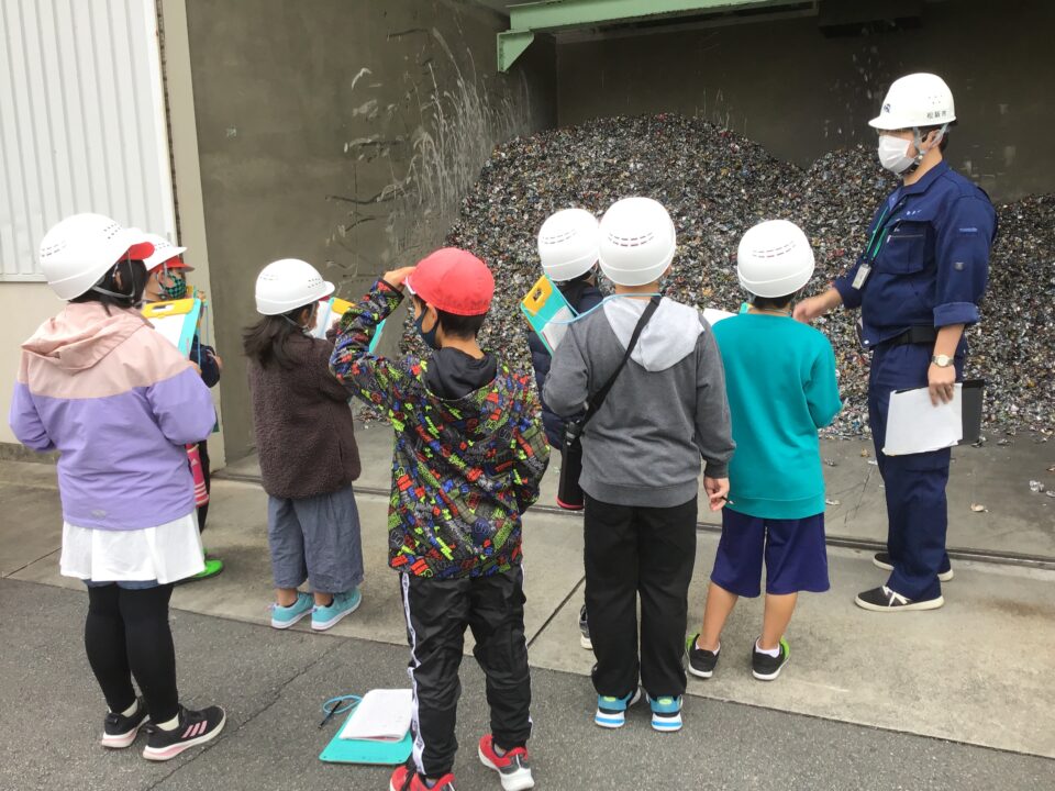 松阪リサイクルセンターでは、プラスチックやペットボトルやアルミ缶がリサイクルされる様子を見学しました。松阪浄化センターでは、下水道の仕組みや汚れた水をきれいにする微生物について学びました。松阪市クリーンセンターでは、パッカー車から燃えるごみを入れるところやごみを燃やし、貯めるところを見学しました。