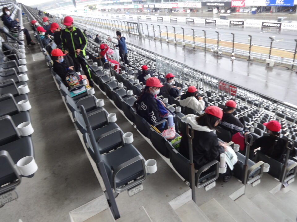 お昼はレーシングカーが走るのを見ながら、観覧席で昼食をとりました。
