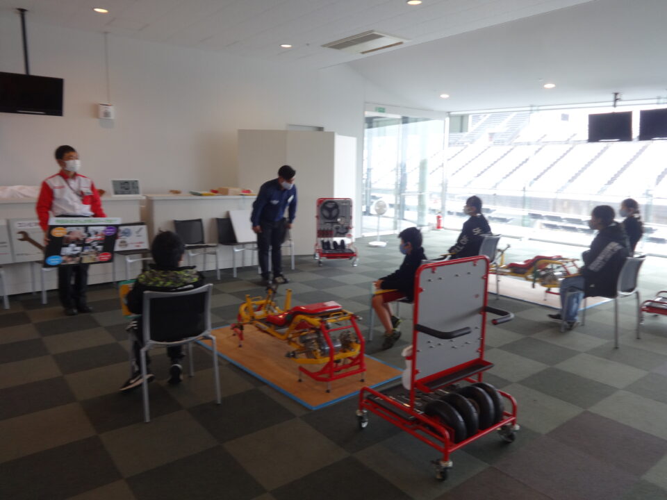 鈴鹿オートリサイクルセンターでは、自動車の3R(リデュース 減量、リユース 再使用、リサイクル 再利用)をする様子について学びました。鈴鹿サーキット(学習プログラム)では、デザイナー、モータースポーツ、エネルギー、メカニツクの四つの体験グループに分かれてしっかりと学習をしました。