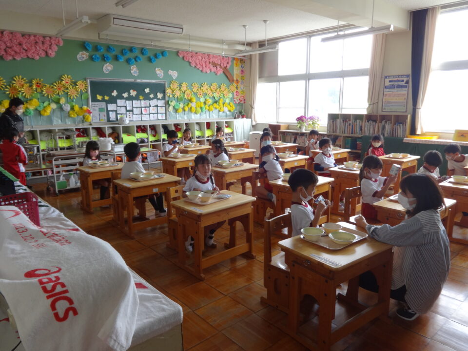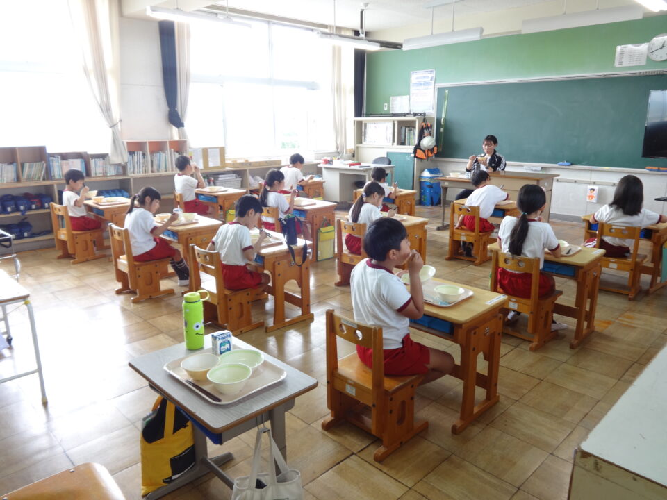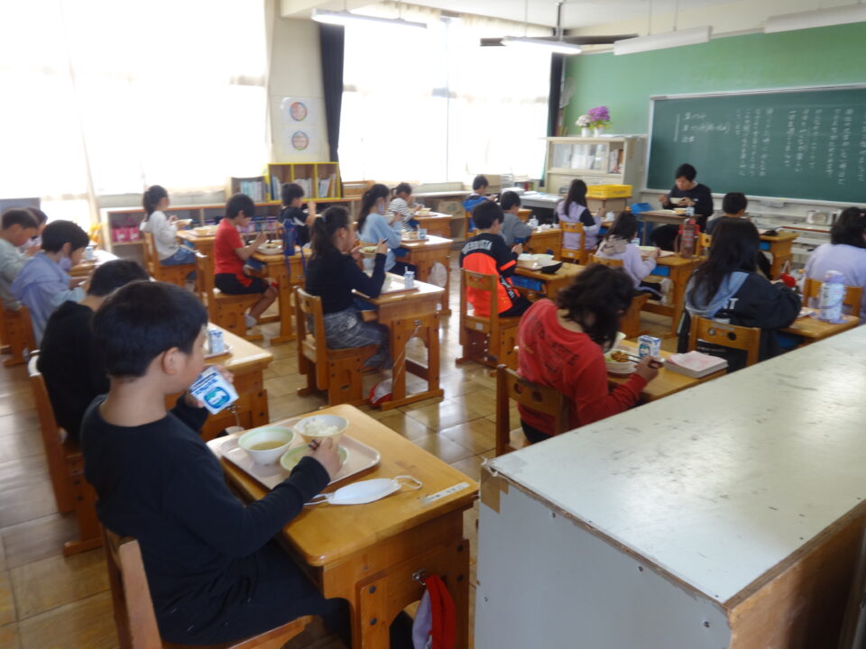 各学年とも、先生の指導を受けて、給食の計画を立て、給食の活動がしっかりできていました。給食当番の活動もとてもよくがんばっていました。特に、1年生は初めての学校給食をとても嬉しそうにしていました。食べ終わった後は、マスクをしっかりつけることができました。
