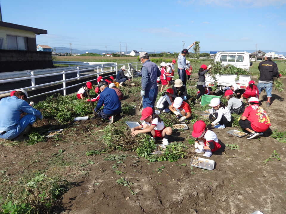 地域の環境保全協議会の方々にお世話になり、落花生が収穫しやすいように、スコップで土を掘り起こし、お世話をいただきました。