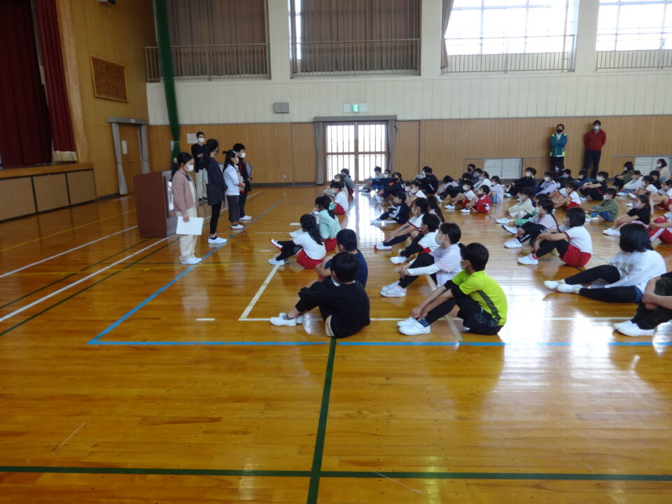 児童会役員の4人は、全校児童の前で、自分の取り組みたい目標をしっかり伝えました。それぞれのリーダーとして、みんなのためにがんばってくれることを願います。