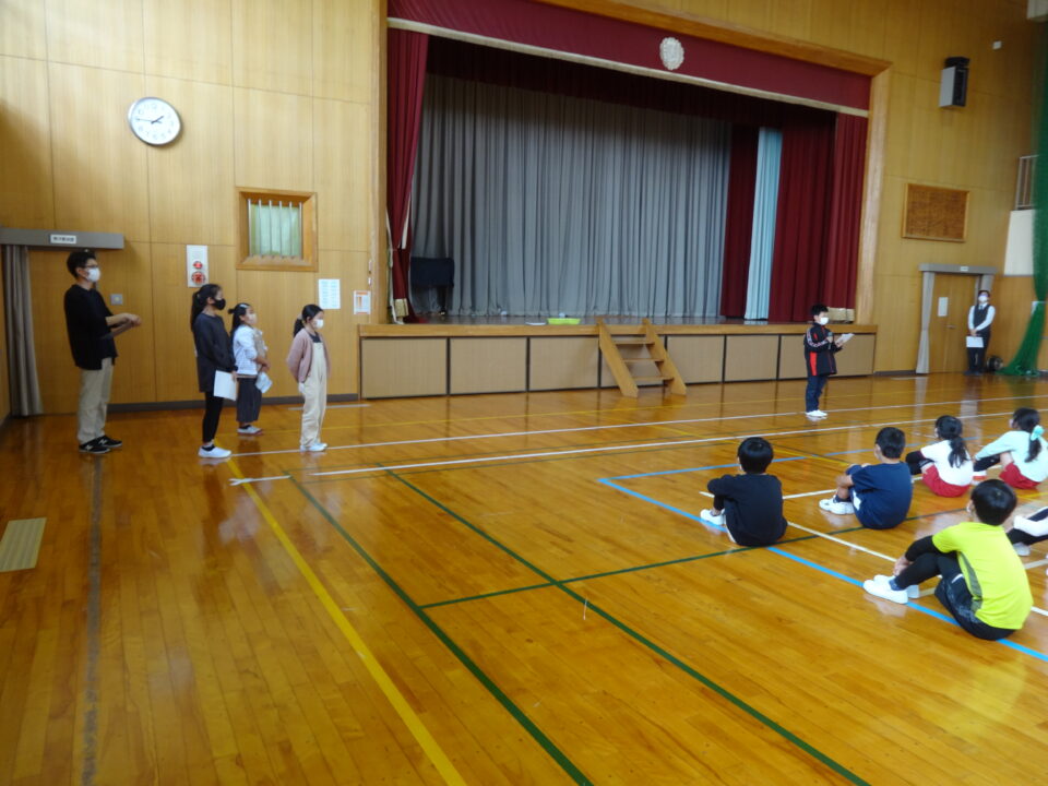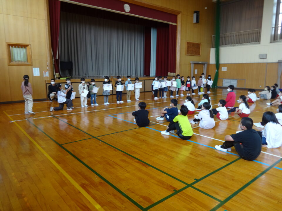 また、1年生を迎える会では、1年生が一人ひとり元気に自己紹介をしました。みんなの前で、名前や好きなもの等をとてもしっかり話ができました。全校のみんなは拍手をして、温かく迎えていました。これからもよろしくお願いします。