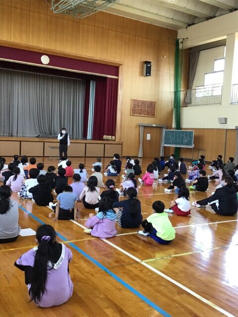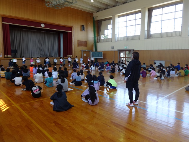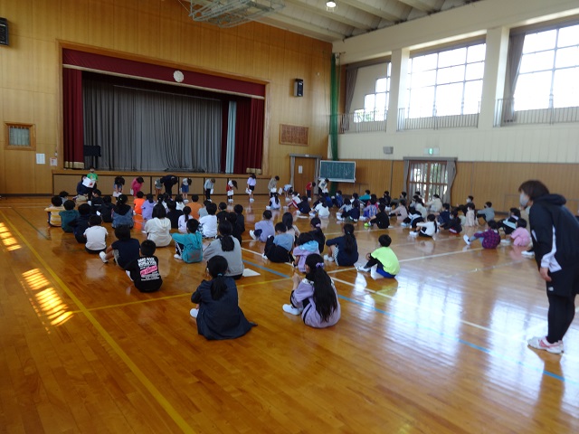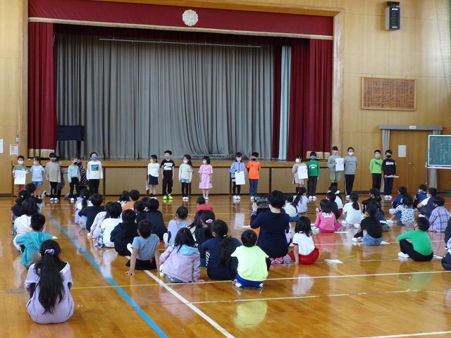 また、1年生を迎える会では、1年生が一人ひとり元気に自己紹介をしました。みんなの前でとてもしっかり話ができて感心しました。全校のみんなは温かく迎えてくれました。
