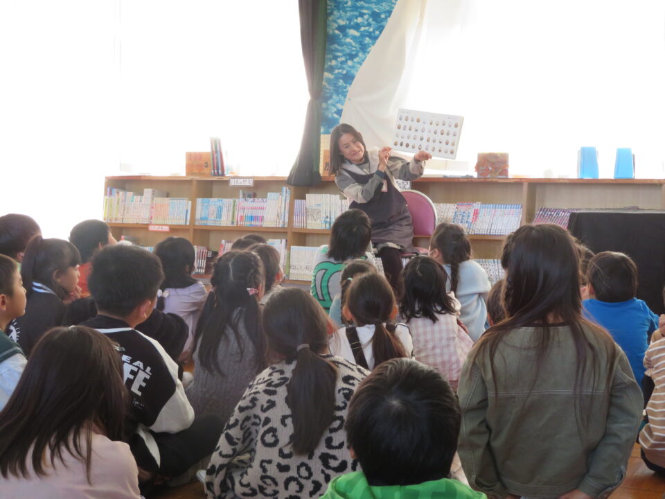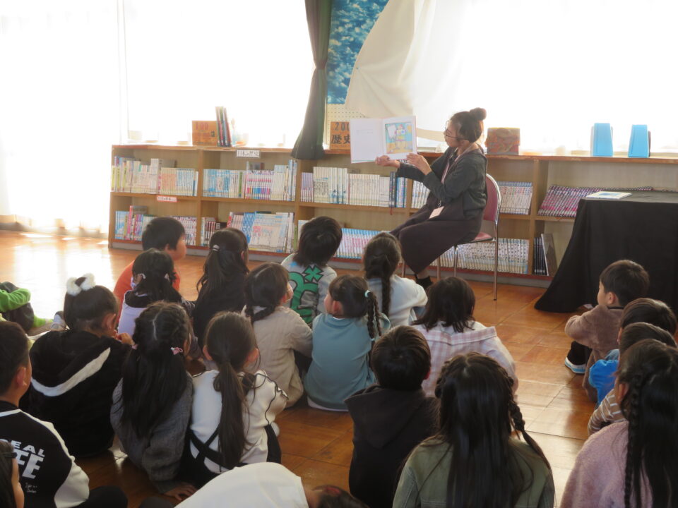11月17日(金)人権ともだち集会の後、引き続いて10:45から1・2・3年生は、三雲お話の会の方による絵本の読み聞かせを、図書室で行いました。この読み聞かせのテーマは「多様性」です。