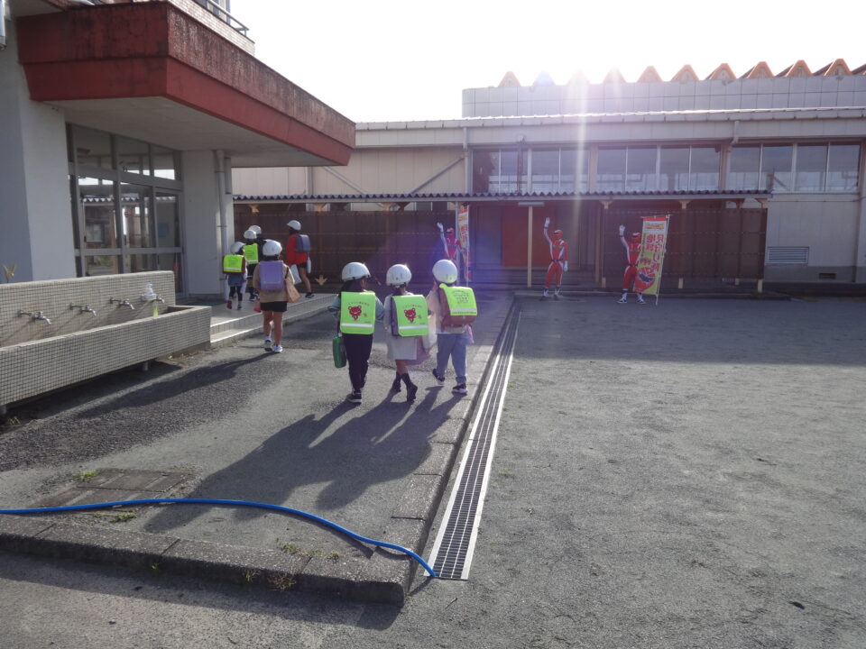 今年も、10月11日(火)の朝、「地域の見守り隊」の3人の赤レンジャイのみなさんが、児童昇降口の前で、子どもたちを迎えてくれました。