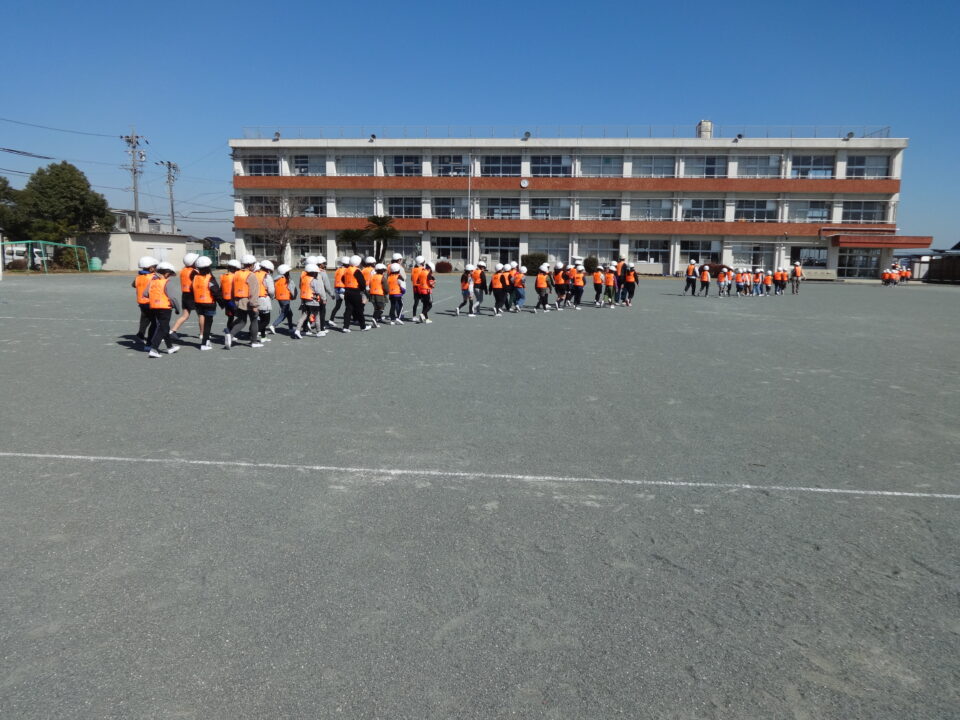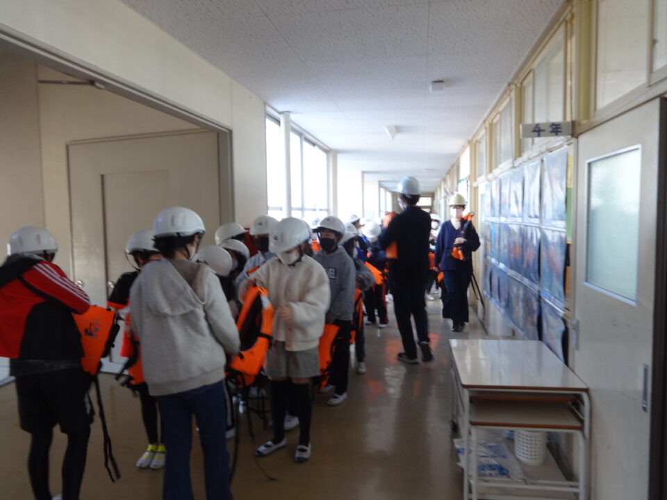2月28日(火)に、本年度3回目の避難訓練を実施しました。実施日時は知らせず、いつ起こるか分からない想定で実施しました。地震が起こり、その後火災が発生する想定の避難訓練でした。地震による津波の対応もしました。