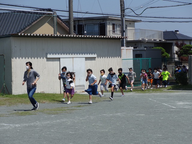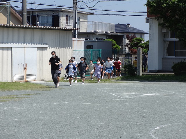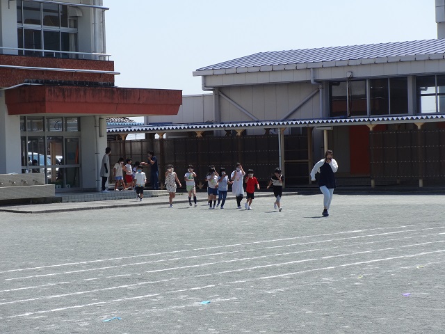 子どもたちは先生の指示、誘導に従って、早く避難することができました。避難にかかった時間は、2分43秒でした。