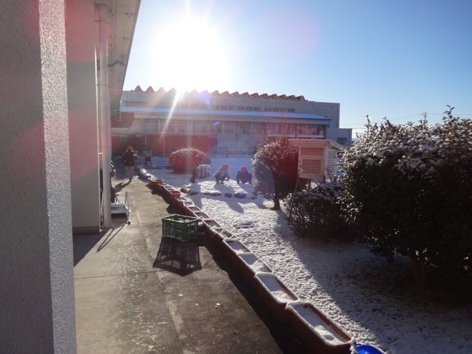 2月24日から25日かけて、雪が降りました。寒波で心配もありましたが、この地域では、朝には天気も回復に向かい、子どもたちも安全に気をつけて、元気に登校できました。