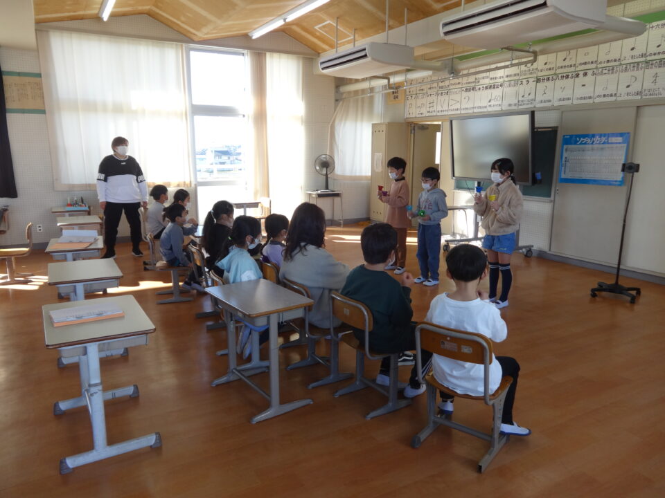 2年生と6年生が音楽の授業で合奏の発表をしました。