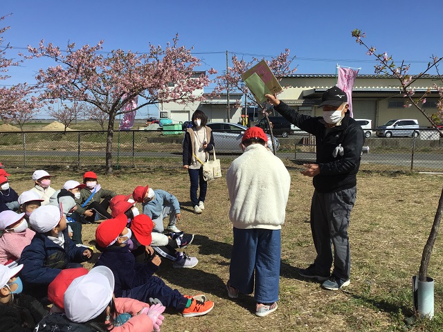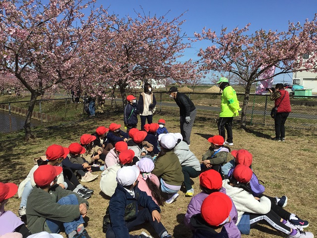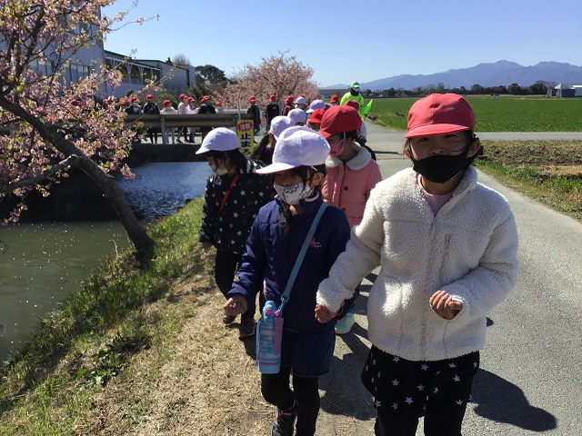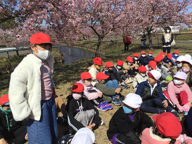 学校の近くの笠松河津桜ロードの河津桜が満開となりました。1,2年生は学校から徒歩で花見に行きました。そして、河津桜を植えた地域の方から、なぜここに桜を植えたのか話を聞きました。地域の方の願いがこの桜にはこもっていることがわかりました。これから子どもたちの世代がこの桜を大切に守っていき、この河津桜ロードがますます美しくなっていくことを願います。