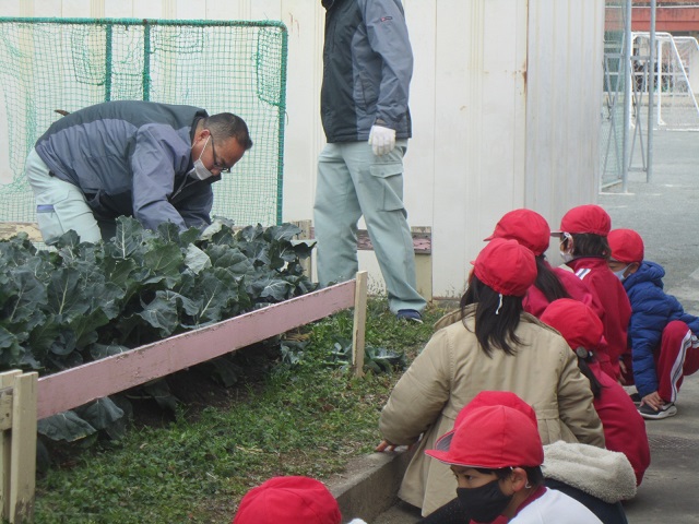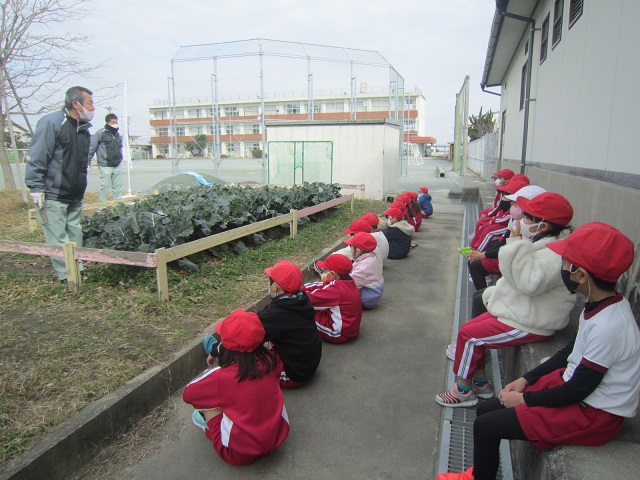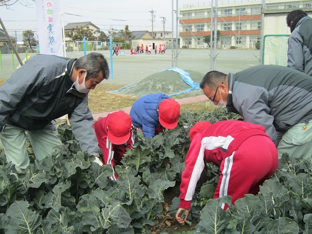 2月1日(月)2年生はJAさんに来てもらってブロッコリーの収穫をしました。ちょうど4か月前に苗植えをしたブロッコリーはとても大きく育ちました。収穫したものはお家に持ち帰りました。秋から冬、寒さの中たくましく成長したブロッコリーは栄養満点です。明日は立春。作物の成長と共に春はもうすぐそこまで来ています。