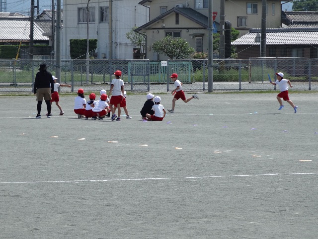 6月7日(月)の5限目には、3年生が体育の学習でリレーをしました。赤白2チームに分かれて行いました。みんな、しっかりした走りで、バトンをつないでがんばっていました。とても楽しそうな姿がありました。暑い日でしたので、終わった後は、しっかり水分補給を行いました。