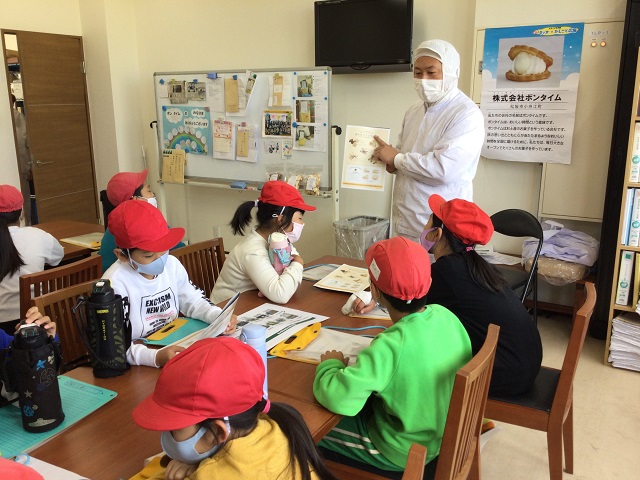 先週の月曜日に3年生は校区にあるお菓子メーカー「ボンタイム」さんに社会見学に行ってきました。社長さんから説明してもらった後、工場内を見学させてもらいました。ホコリやゴミを工場内に持ち込まないよう、服装や帽子を整えました。工場内はお菓子を作るとってもよい匂いがしました。帰りには工場で生産されたお菓子を一杯いただいて帰ってきました。今年はコロナ禍の影響でなかなか実施できませんでしたが、毎年児童が楽しみにしている社会見学です。ボンタイムさんありがとうございました。