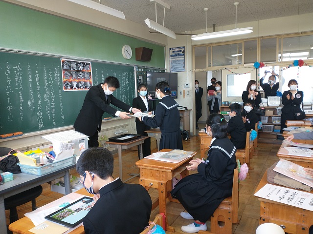 18日には卒業証書授与式を行いました。式終了後教室で、一人ひとりに改めて担任から卒業証書とPTA会長から卒業記念品が手渡されました。担任の道徳の授業で締めくくり、校長の校歌ギター伴奏、1年生の作った河津桜の花道と5年生、教職員の拍手に送られて6年生18名は巣立っていきました。ご卒業おめでとうございます。