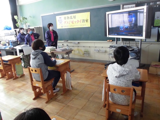 6年生は松阪花しょうぶライオンズクラブの方々に来てもらって、薬物乱用防止について学習しました。薬物を商売にしている人に誘われたり、興味を持ってしまって薬物と出会ってしまうことのないよう話を聴きました。手を挙げて積極的に質問しました。 「ダメ ゼッタイ」 今日学んだことを生涯忘れないようにしましょう。松阪花しょうぶのみなさんありがとうございました。