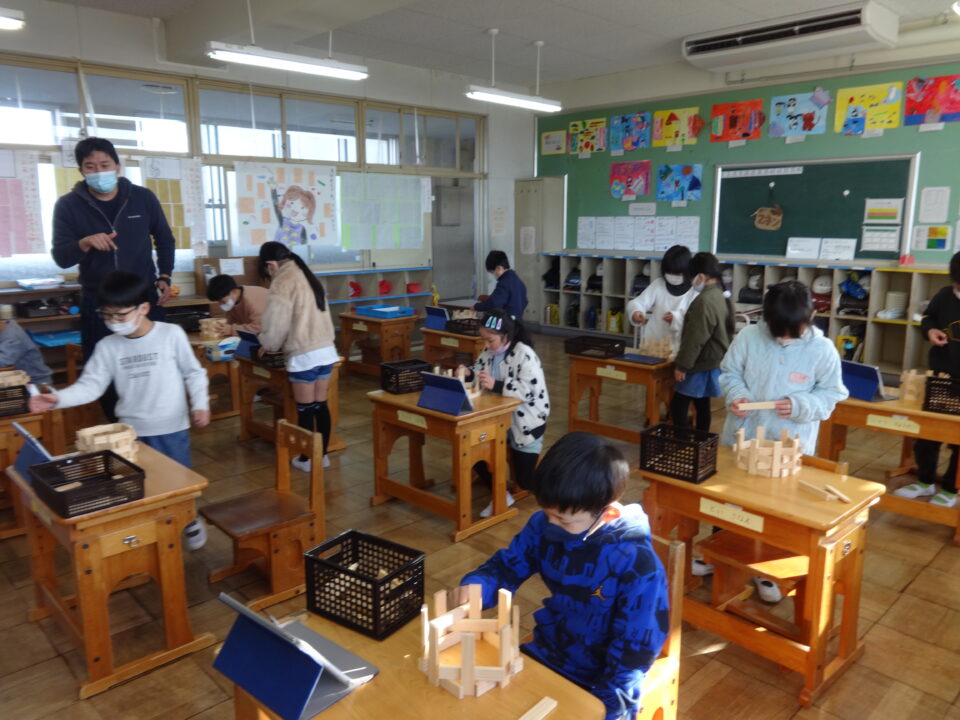 各学級に入ったKAPLA(カプラ)を、みんなで楽しんでほしいと思います。