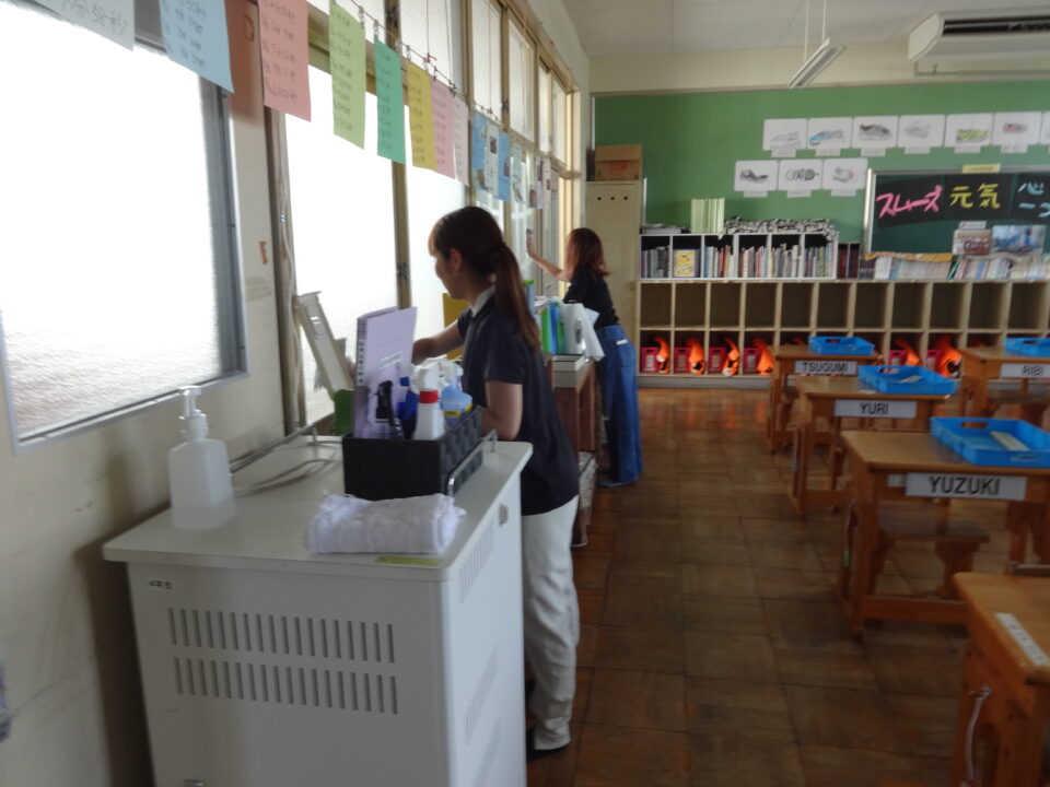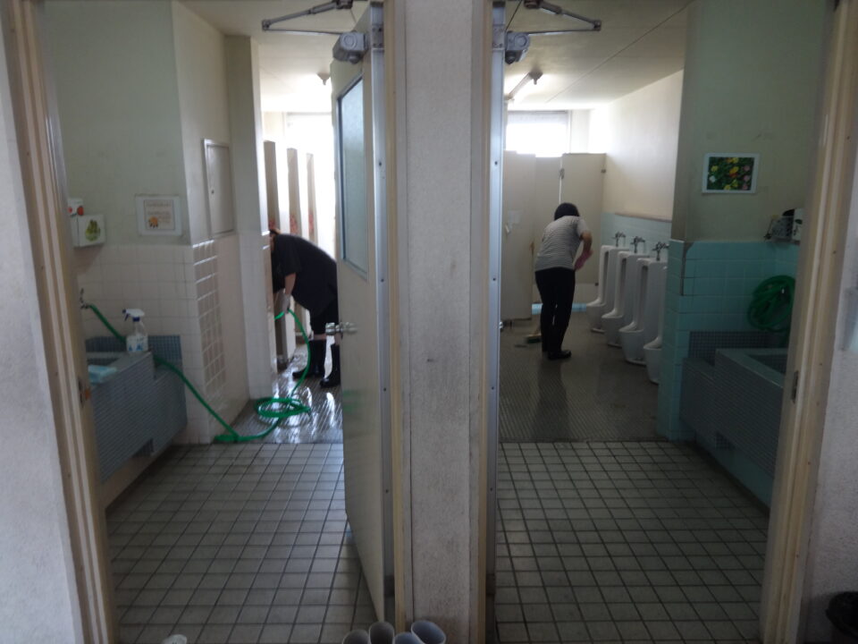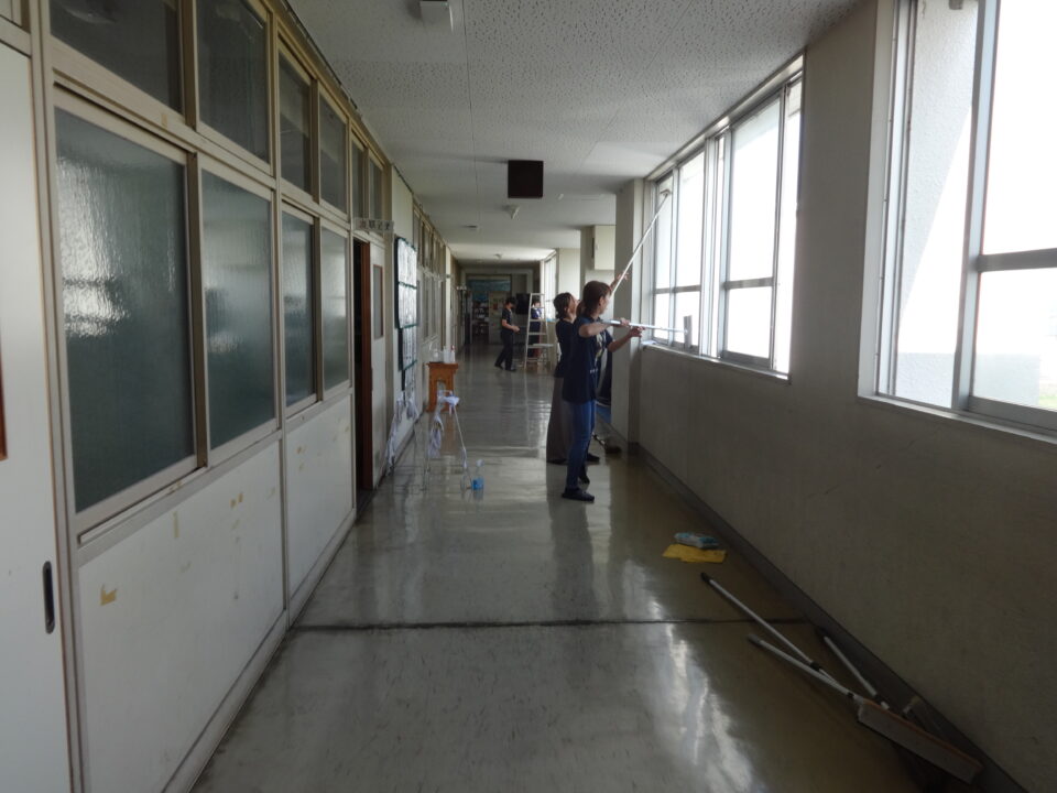 今年度は、体育館、ランチルーム、校舎1階、2階、3階の窓拭きや蜘蛛の巣取り、流し、トイレ掃除、昇降口等を行い、とてもきれいにしていただきました。